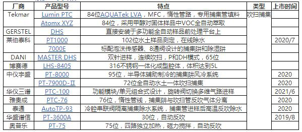 主流吹掃捕集/動態頂空系統匯總(供參考不分先后)