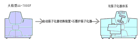 選件AAC-7000可實現(xiàn)火焰原子化器和石墨爐原子化器的集成,并使得二者的切換方便迅速。* AAC-7000不能安裝在AA-7000G上。